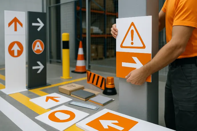 Totems, panneaux, marquage sols, zones logistiques, bâtiments publics, chantiers.