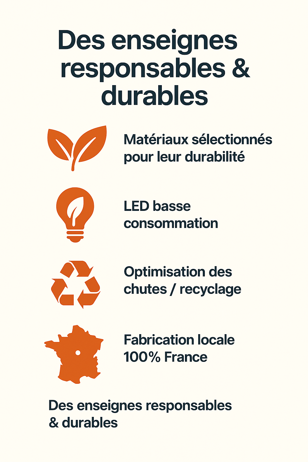 Une enseigne est un investissement : nous garantissons la tenue des matériaux dans le temps, l’efficacité lumineuse, et intervenons en cas de SAV ou d’évolution de votre identité.